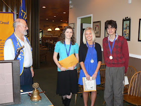 Glenda Standeven presented medallions and prize money to the first, second and third place winners for the Chilliwack Optimist Club Essay Contest at a dinner recognition ceremony at Dakota's Restaurant on Saturday, April 2.
